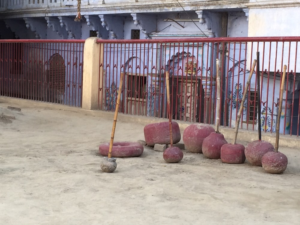 I wanted to know, too. When I went upstairs onto a small garden filled mostly with sand I could see them: the Indian men in traditional gym outfit exercising. With traditional weights and a lot of body control. I stayed there for a while and observed them. I was impressed.
