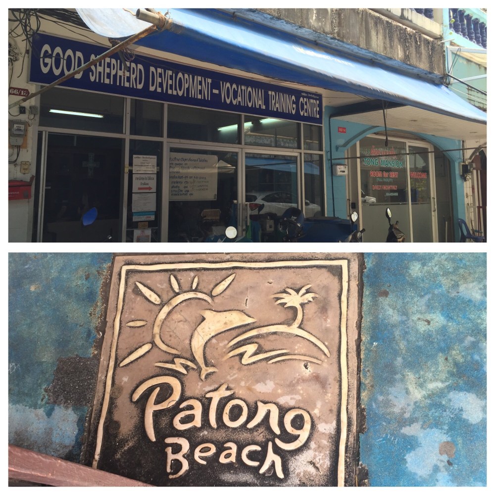We enter a small secondary street at Patong, the famous beach in Phuket,Thailand. Patong is known especially because of its red-light district. In front of us there is the Good Shepherd vocational center, a location for Thai women and girls, working in the red light surroundings, to learn better English, to study for a massage certificate or to learn basic hair cutting. Even some computers are at the second level of the small house. The vocational center is just one of many initiatives the Good Shepherd sisters run in Phuket.