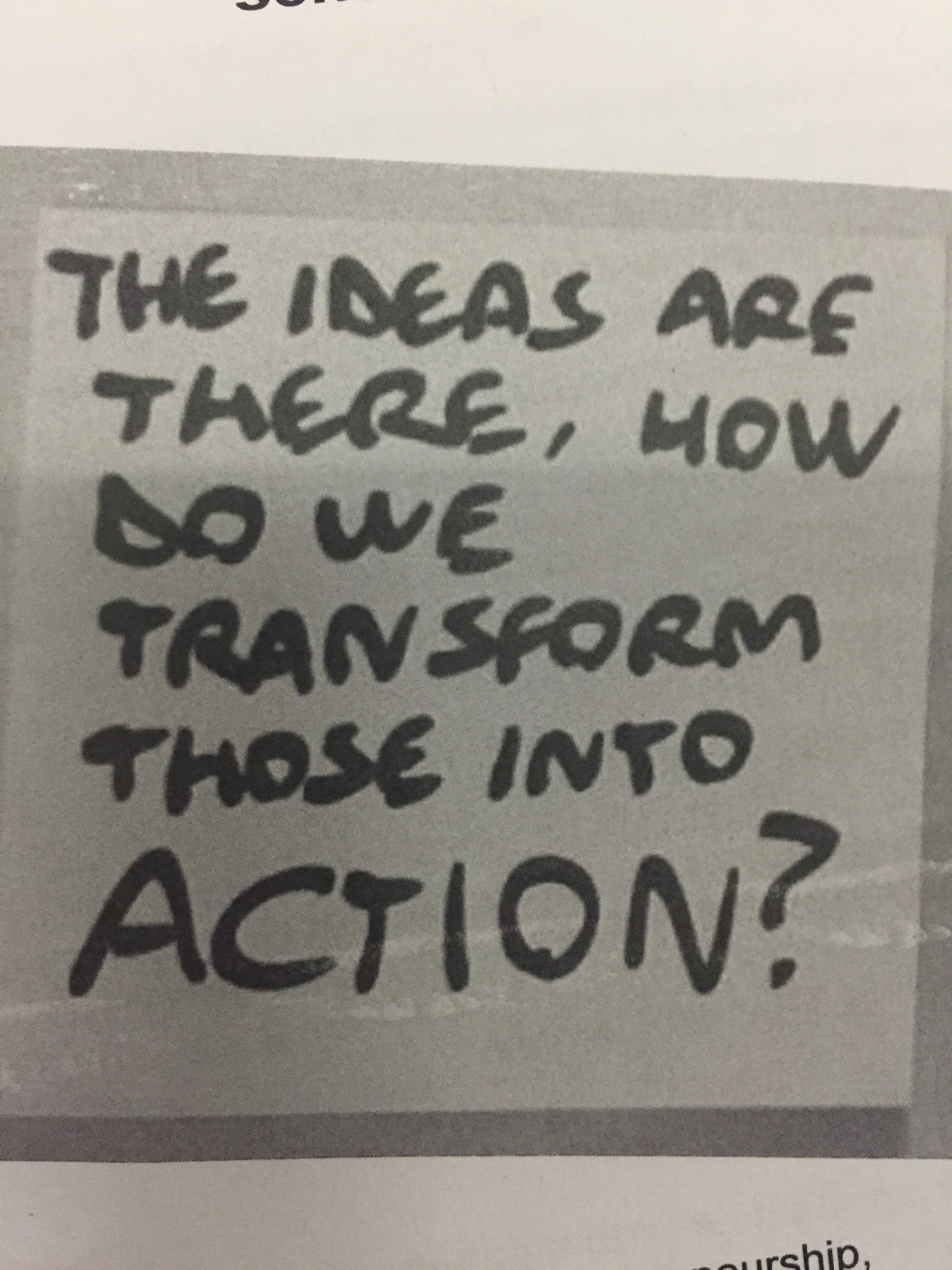 Well, after all -without doubt even interesting discussions – just remains a kind of delusion. My personal delusion – to be clear: Because I belief that all that does not help to encourage people and to risk to become and act as a social Intrapreneur. Again and again we feel much more comfortable to follow traditional ways before we risk. Before we act. Talking is easy. Planning is good. How? By applying traditional concepts, spending a lot of our energy to have “all papers and strategies in place” before we start, to compete with each other while introducing and citing famous personalities and recognized methodologies of the past. We want to make sure that we have thought enough before we risk. Do we need to show our intellectual capacities first? There is nothing wrong with it and planning is not bad as long as we don’t spend too much time and effort with theories. Just because of one phenomena that I have observed several times over the last years: while talking we tent to loose the original motivation to make change really happen and to start doing – now.