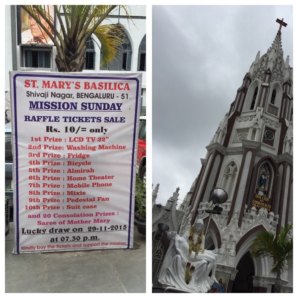 In front there is a huge Christian church with a lot of flowers. “Do you want to buy a raffle ticket?”, a woman asks when I enter the church. “You can win a LVD TV”.