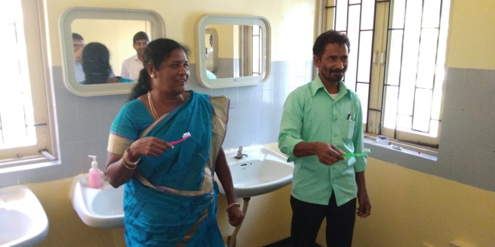 One main topic was also hand wash with soap before food and after toilet use, good wash habits, clean toilets, importance of toilet and no open defecation, the importance of cleaning private parts and menstrual hygiene as well as the importance of brushing teeth twice in a day and nail cutting.