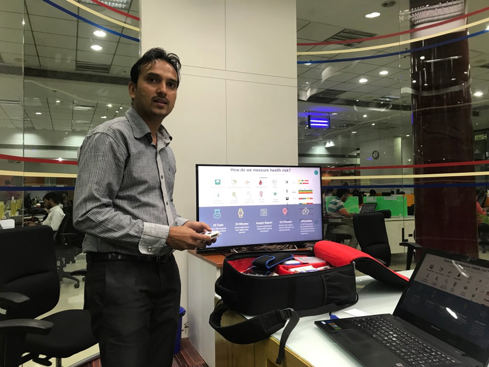 One of the entrepreneurs is demonstrating a set for health care workers to test 10 different parameters. Mostly parameters to avoid and prevent non- communicable diseases such as high blood pressure, diabetes, but also eye sight, growth etc. “We have be able to make it mobile and cheap. A ten parameter test costs – done in this way – roughly 3 USDollars. We need to invest in prevention, not in sick care,” he adds. Indeed an interesting model that targets at roughly 200 millions of people in India who live closely above the poverty line.