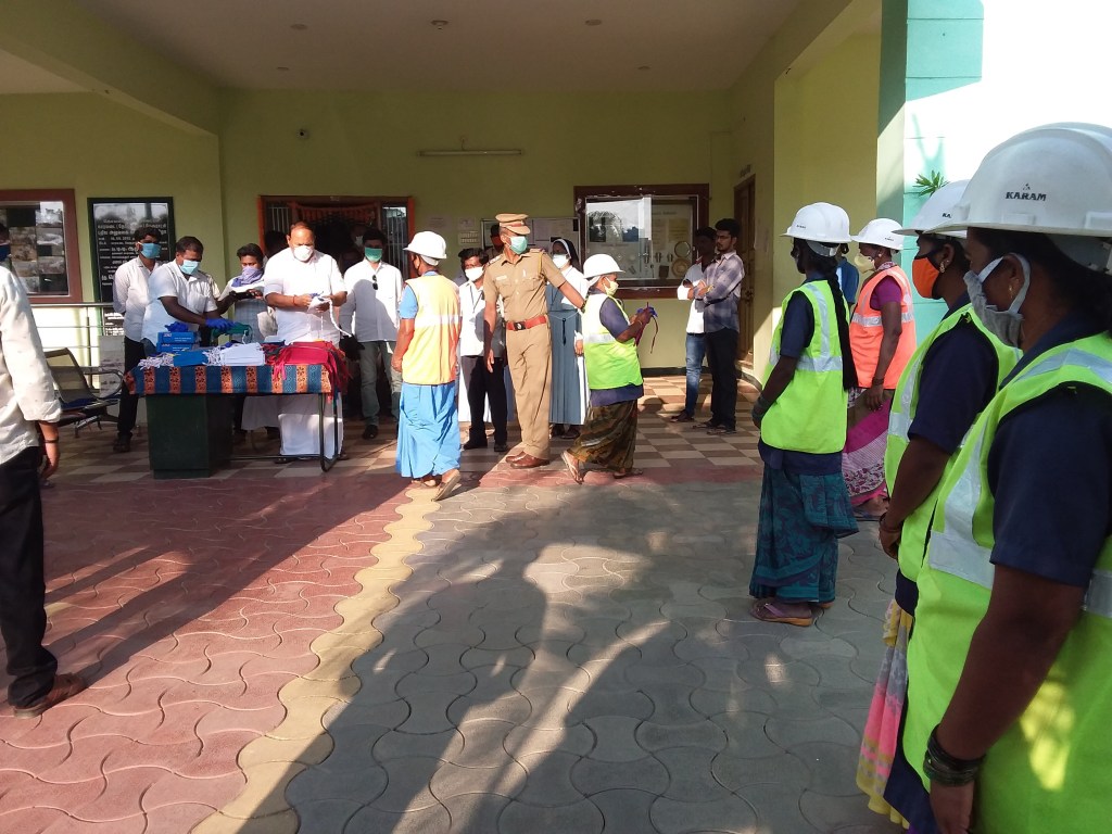 “We started stitching of masks and we could produce around 200 pieces in a day. On 04 April 2020 we could distribute the masks to the sanitary workers of Karamadai panchayat in the presence of Police officials and political leaders,” explains sister Anila “We are involving also some more women who are in their houses without job due to lock down, so that 8000 masks can be produced in the next four weeks.”