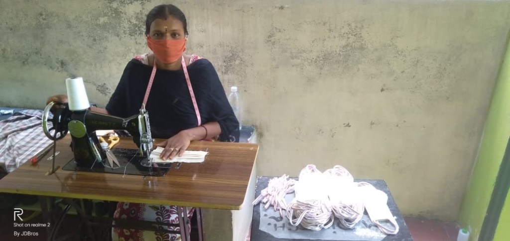 So far our tailoring group women in Karamadai, South India have produced 4000 masks (out of 8000) and these are being distributed to the sanitary workers, self-help group women and people from interior tribal areas. In the tribal areas the masks are distributed along with the food kits. Here the need for food is very high. There are no informal jobs any more, no income, no possibility to buy or sell.